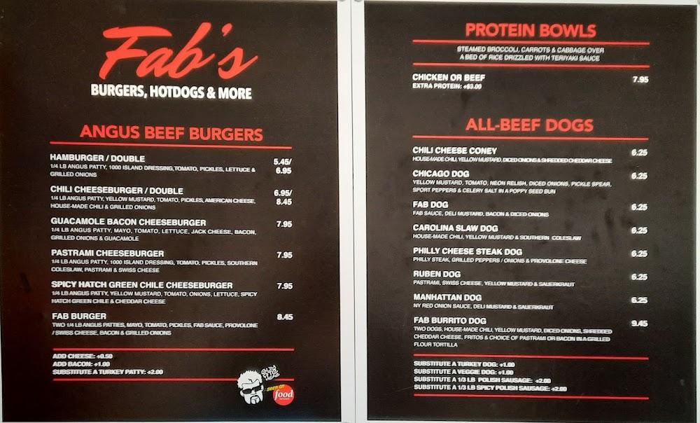 Fab Hot Dogs boasts a menu filled with 76 mouthwatering options. The variety includes items like all-beef hot dogs, specialty dogs, burgers, and salads. You can even customize your own hot dog with different toppings!